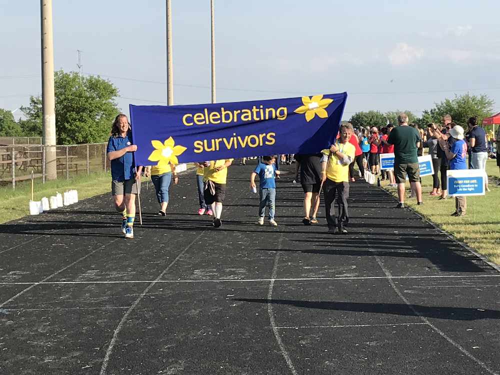 Friday, June 8, 2018 <br />Cancer Survivors at Relay For Life and Mayor Trevor Birtch walk around the the track during their victory lap to show the celebration of the cancer survivors at C.A.S.S.